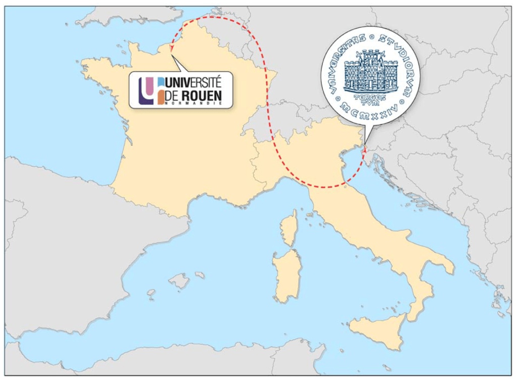 • préparer leur mémoire – en langue française – sous la direction d’un.e enseignant.e de l’Université de Rouen et un.e enseignant.e de l’Université de Trieste ;
